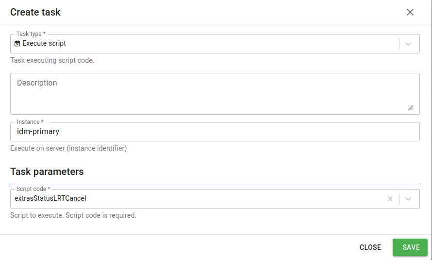 - create a long running task ExecuteScript with ExtrasStatusLRTCancel as its script